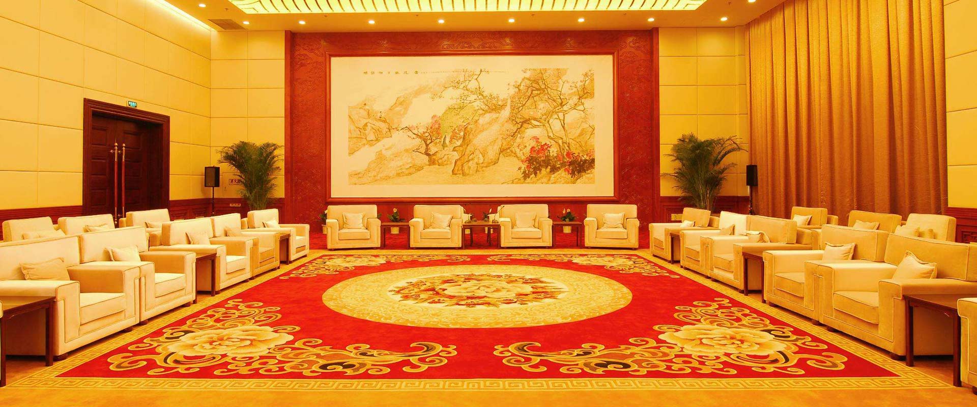 客房地毯可优选机织威尔顿地毯,因为该地毯密度较大,绒头较高、丰满,脚感相当合适。选用该类地毯的羊毛配比一般在50%-80